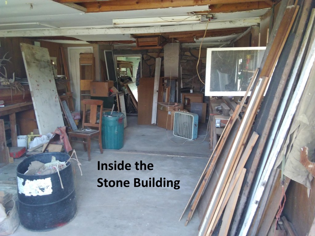 Last but far from least, is the Stone Building. This building, we’ve learned, was a general store about 75 years ago. It looks like it was added on to two different times over the years. The previous owner will use this building until the end of the year to store what he could not get off the property. We hope to turn this building back into a store and our “hobby” space.