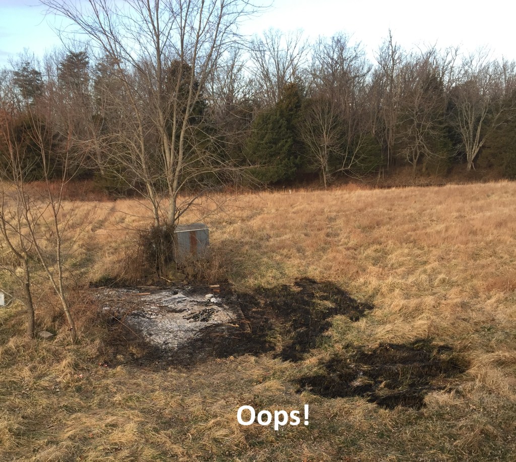While we were working our regular jobs one day, our youngest son burned some wood and brush for us. The fire jumped the fire ring at the very same time the well pressure tank failed and he had no water. Fortunately, there was a rain barrel nearby that he used to control the fire. We are now the proud owners of a new tank.