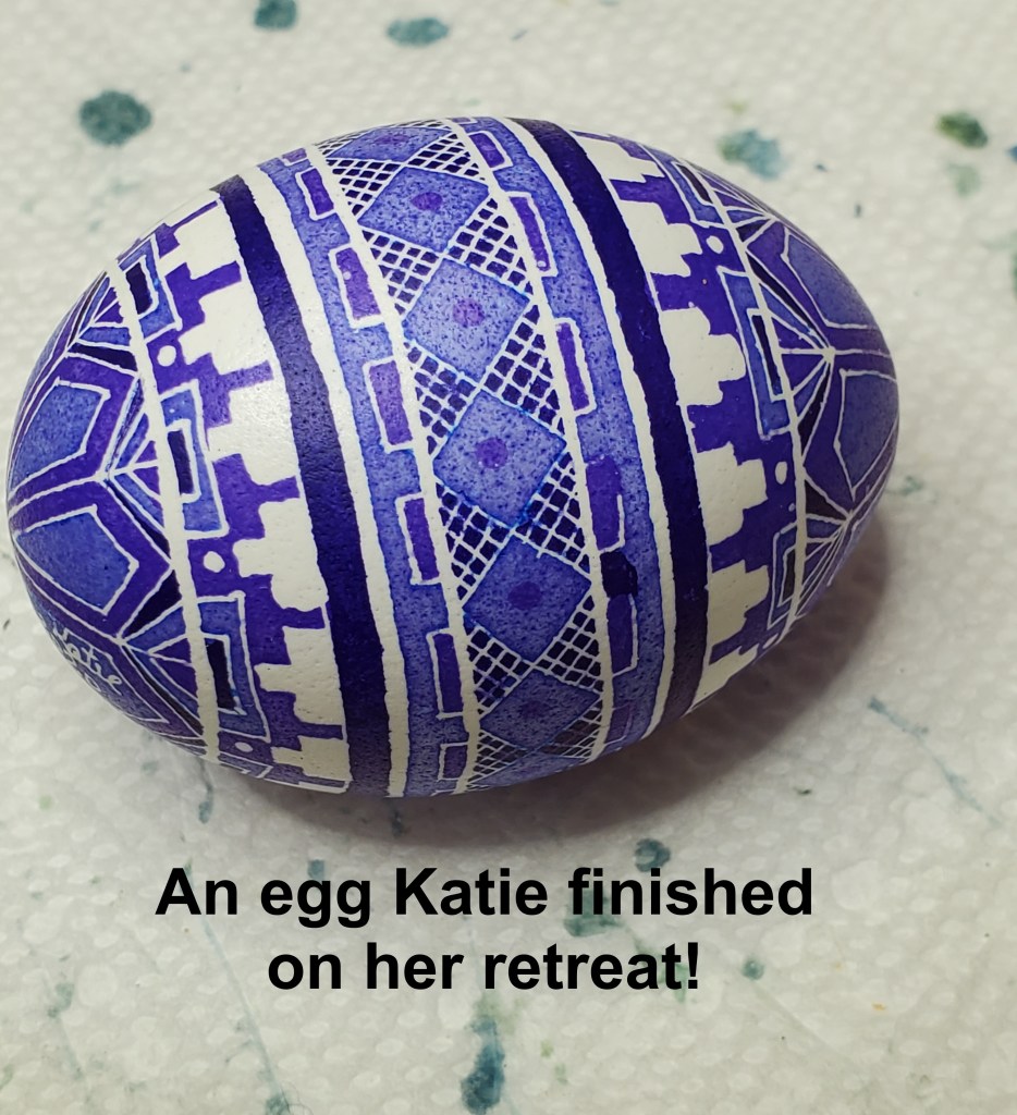 Lest you think that all we do is work on the farm – Katie spent the last weekend on “retreat” with her artist friends working on Pysanky – Ukrainian Eggs. She’s been making these for more than 20 years and hosts a Pysanky event every Fall in Ozark. We all have to have our creative outlets!