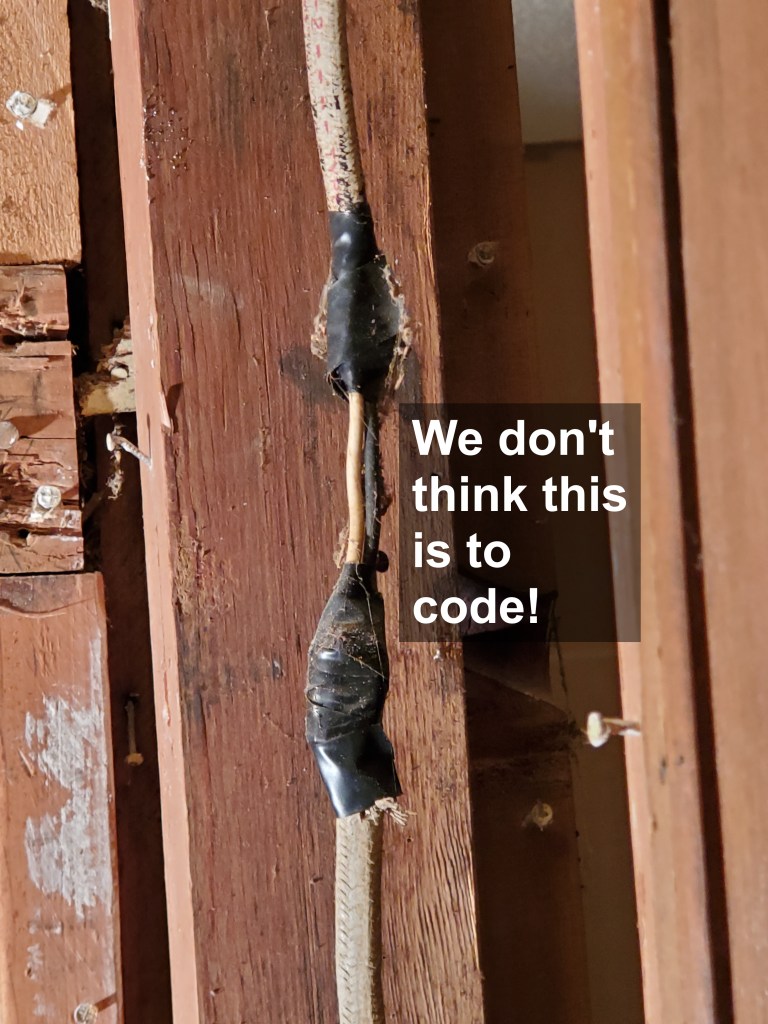 We also found some questionable wiring and we doubt any of it is to current code. We are glad to have all the walls open and are planning on redoing all the wiring in the house. We are going to get structural engineer to come in and help us make decisions about going forward since we want to completely remove several walls.