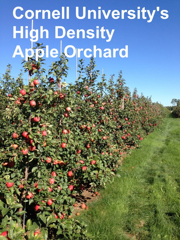 This post is going to be all about our plans for the apple orchard. Our goal is to have a commercial orchard with about 2,500 trees. In order to get this many trees on the 2½ acre pasture, we are using a technique called High Density, Trellis Trained trees. This is a method of growing trees that has been researched and recommended by Cornell University, the experts in the field. The technique requires dwarf trees that only grow up to 12 high. Because of the trellising technique, the trees only grow to 4’ wide.
