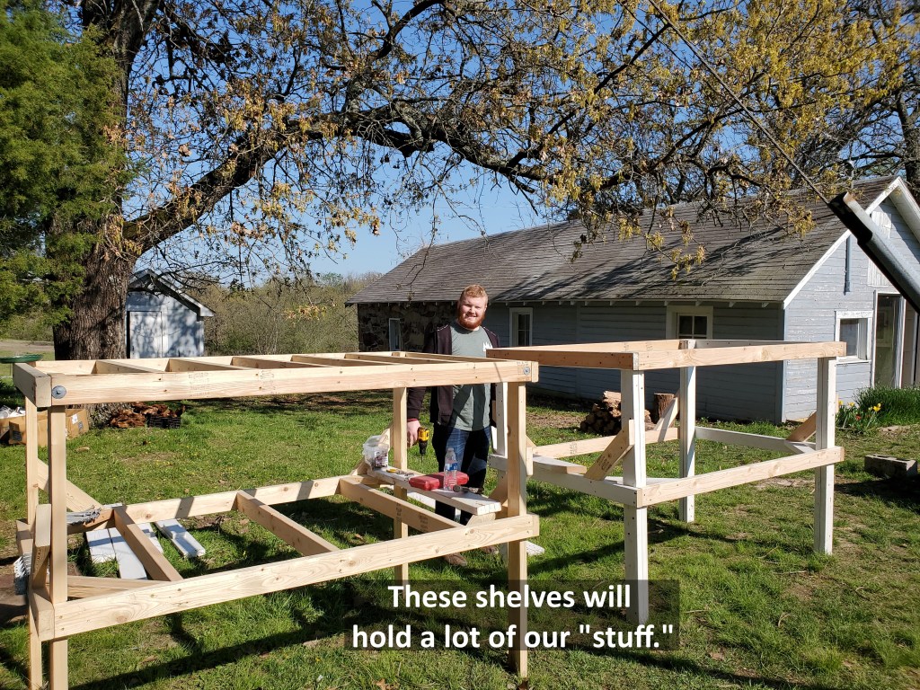 We spent a little more time organizing the garage. Katie and Joshua built shelves, not only to make space to bring a bed down for Joshua’s apartment, but to also make a place for the boxes of stuff we still have in our storage unit.