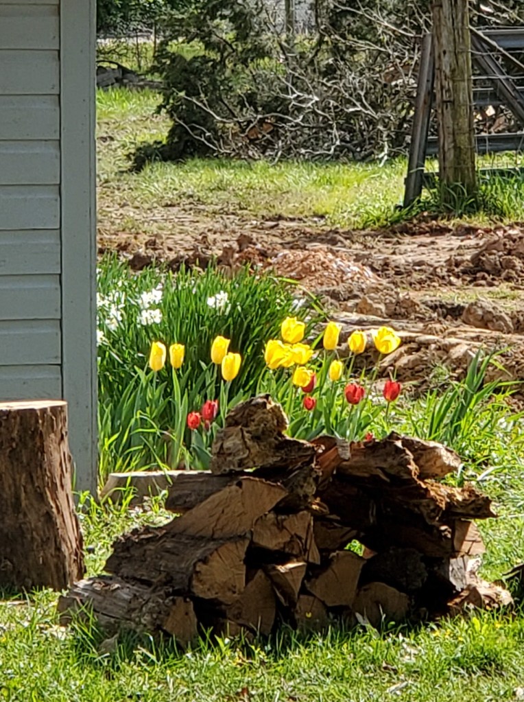 On another note, we still have tulips blooming around the front yard. Between those blooms and the surprise perennials from the previous owner, our front yard is coming alive with color!