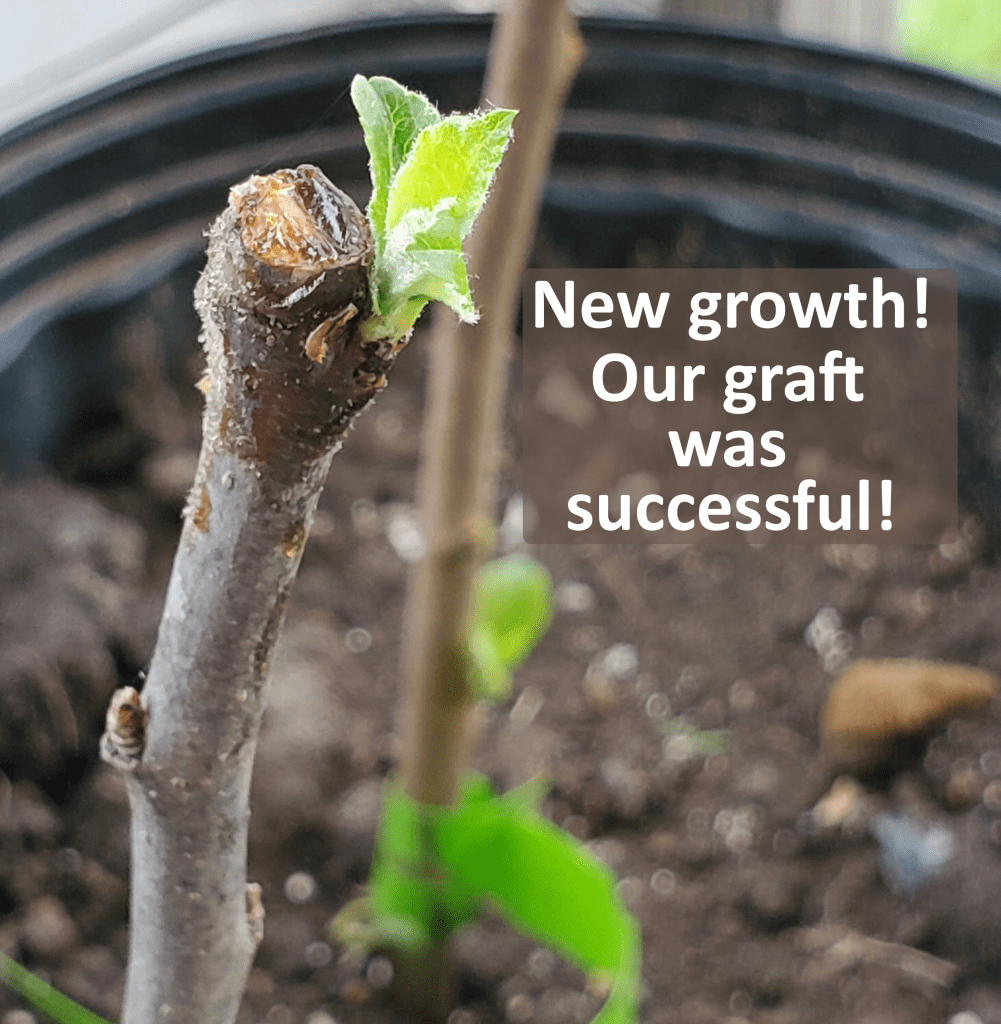 Some great news – our grafted apple trees have taken!  We are thrilled to see small branches and leaves coming out of the scion!!  If we can successfully graft our own trees, we can save thousands of dollars!  We plan to add 300 trees to our orchard next year, and 1,500+ the following year.  The other trees we planted are growing wonderfully.  This is definitely great news!!