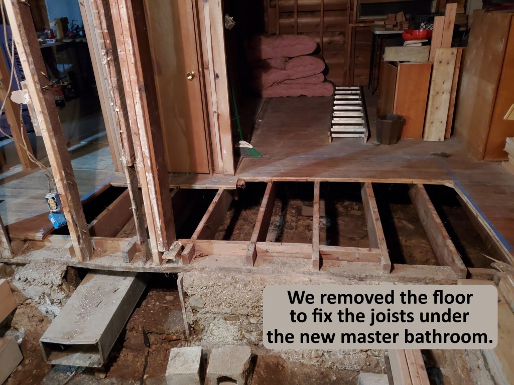 But, that’s the way of any projects. We have to remember to sit back, think of the project and take time to sharpen our saws (literally) and tackle one project at a time. As we were cutting the floor for the new bathroom so our plumber friend could advise us on what to do, we were having a terrible time with the saw buckling in the hardwood. After several stops and starts, we realized the blade was old and dull. After installing the new saw, it cut like butter with a hot knife! We have to do that in our real life, too. Sometimes, the most efficient thing to do is to rest. It allows us to reassess the progress and the “to-do” list and move forward with more enthusiasm and less mistakes.