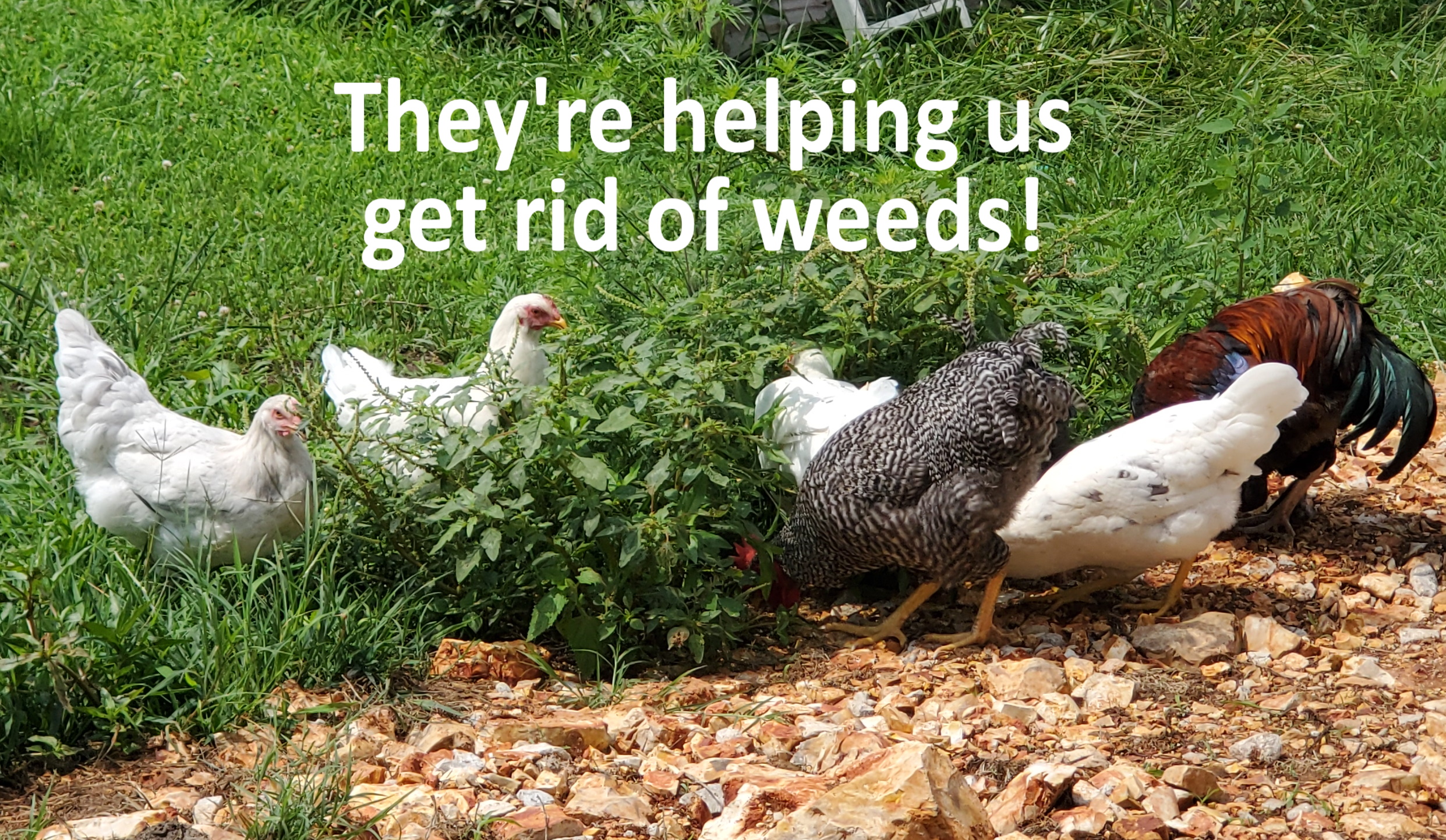 We are now officially chicken farmers! Of the 23 eggs that we hatched after Easter, we have 7 left. Three died as chicks. We sold 4 roosters. Raccoons and opossums got 9 of the remaining hens! We’ve since installed traps and the electric fence will go up this weekend. We hope they’re safe. We have 2 roosters. One is a Black Copper Maran, named “Copper,” the other is a Dominique, but he doesn’t have a name, yet. And only the Black Copper Maran hen has a name. Her name is “Tootsie.” The others will be named as we learn their personalities!