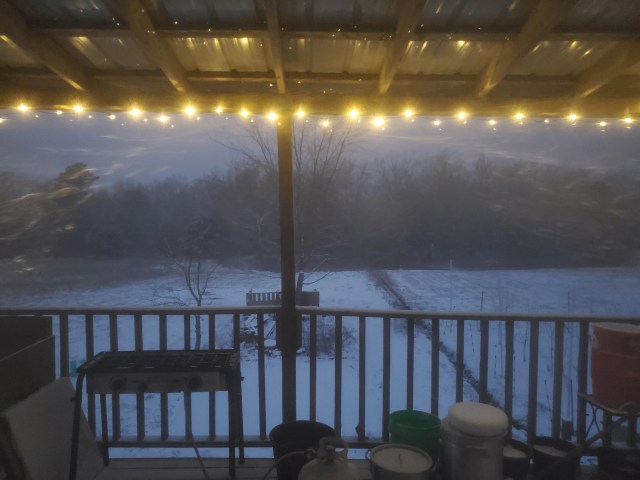 Yikes! Carrying water in this cold weather!! You are amazing, John and Katie. Thank you for sharing.