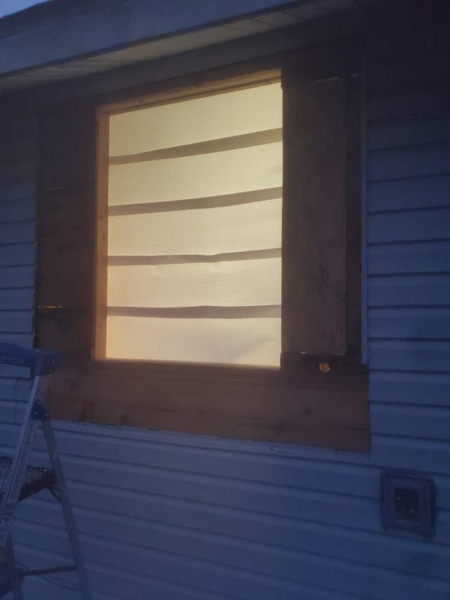 At one point, we thought we were almost finished with the building and wiring. We just had to run wire through 3 studs under a window in the guest bedroom. Unfortunately, we were faced with another challenge to deal with. As we were drilling the holes through the studs around one window, we discovered the 3 studs were hollow from termite damage. Neither of us were ready for that. Since we had to replace the studs, we decided to and replace the window, too. It was a two-day process because it had gotten very cold outside. For every 5 minutes spent outside installing the window, we had to spend 10 minutes inside warming up.