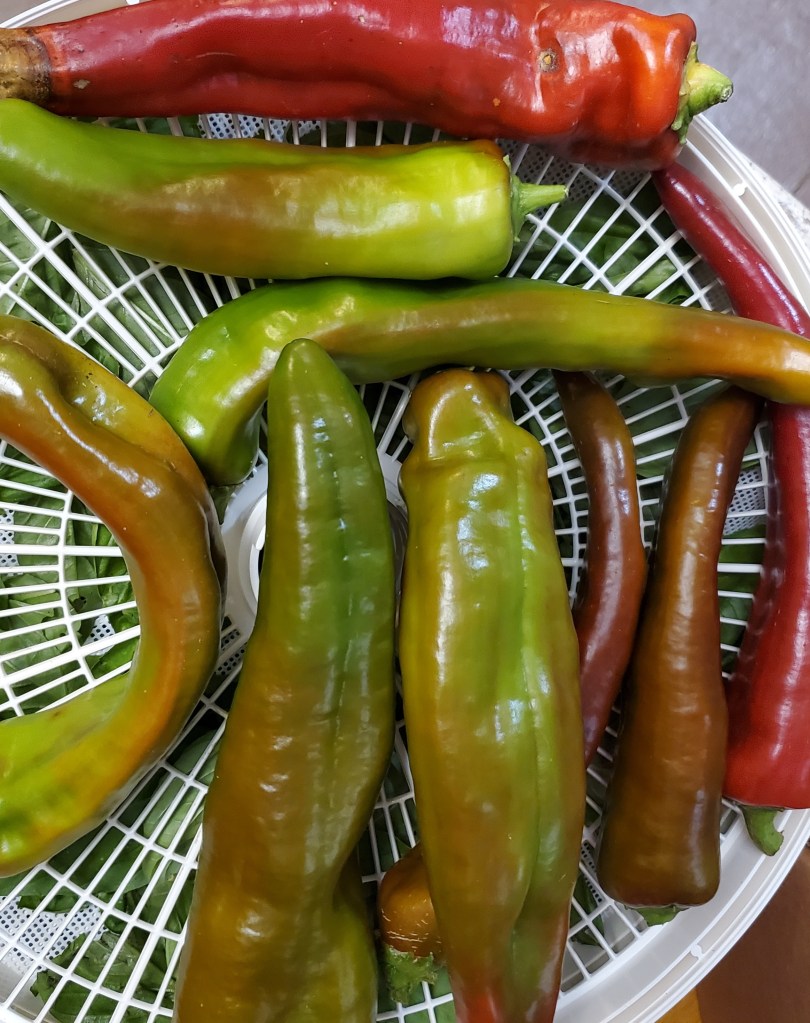 These pictures are from our harvest this week. I froze many of these tomatoes in case we have time this winter to process them. And I cut up 20 tomatoes for the dehydrator (it took less than 10 minutes). I’m also going to freeze the peppers once they turn completely red. We are going to make hot pepper sauce, smoked paprika powder, and chili powder if we get the chance.