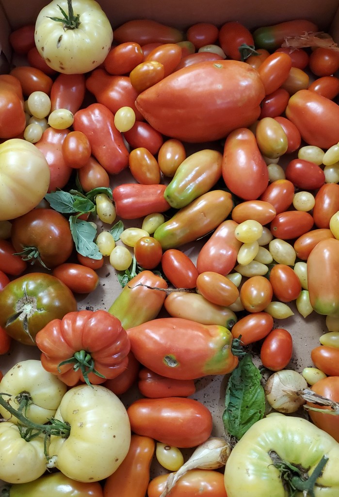 When we got home, we picked all the produce that was ready and I brought it into my office. They were thrilled to be the benefactors of our decision to not process! I also brought some to our local food bank to give away to our neighbors!