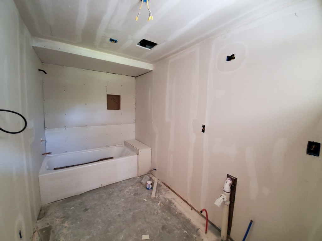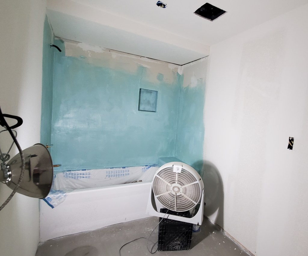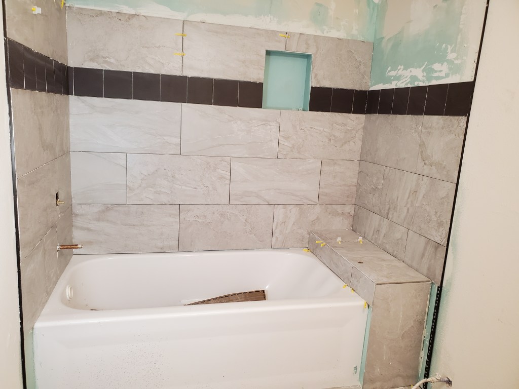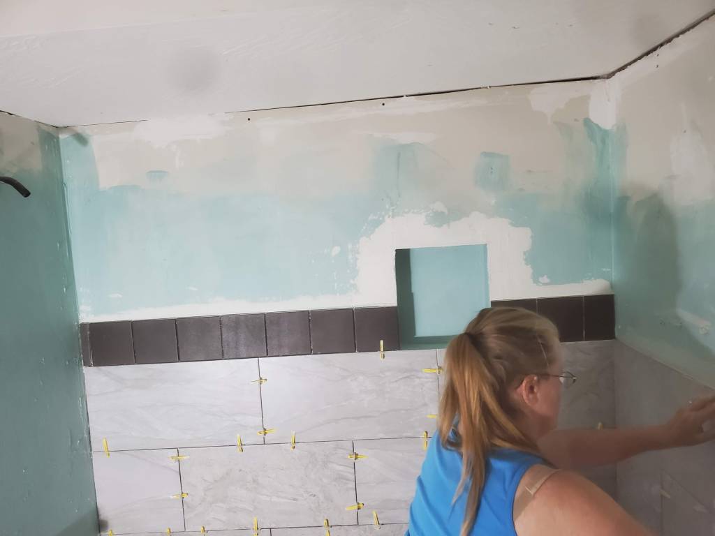 Thankfully, we were able to get the shower tiled and a make-shift bathroom set up for our guests.