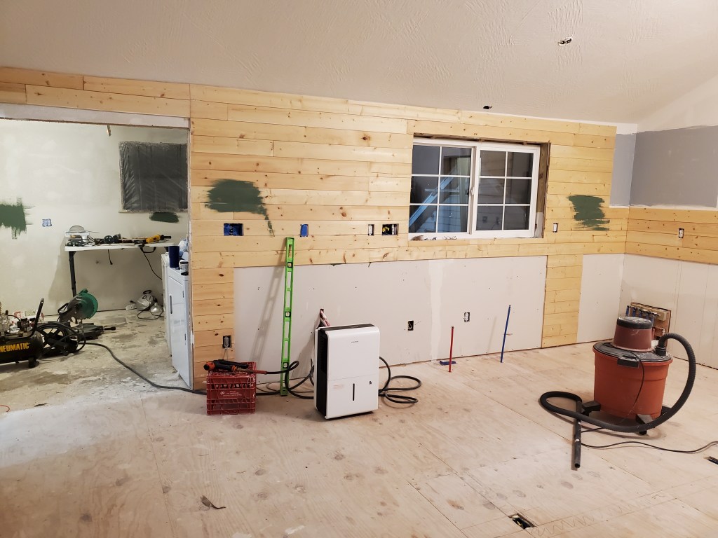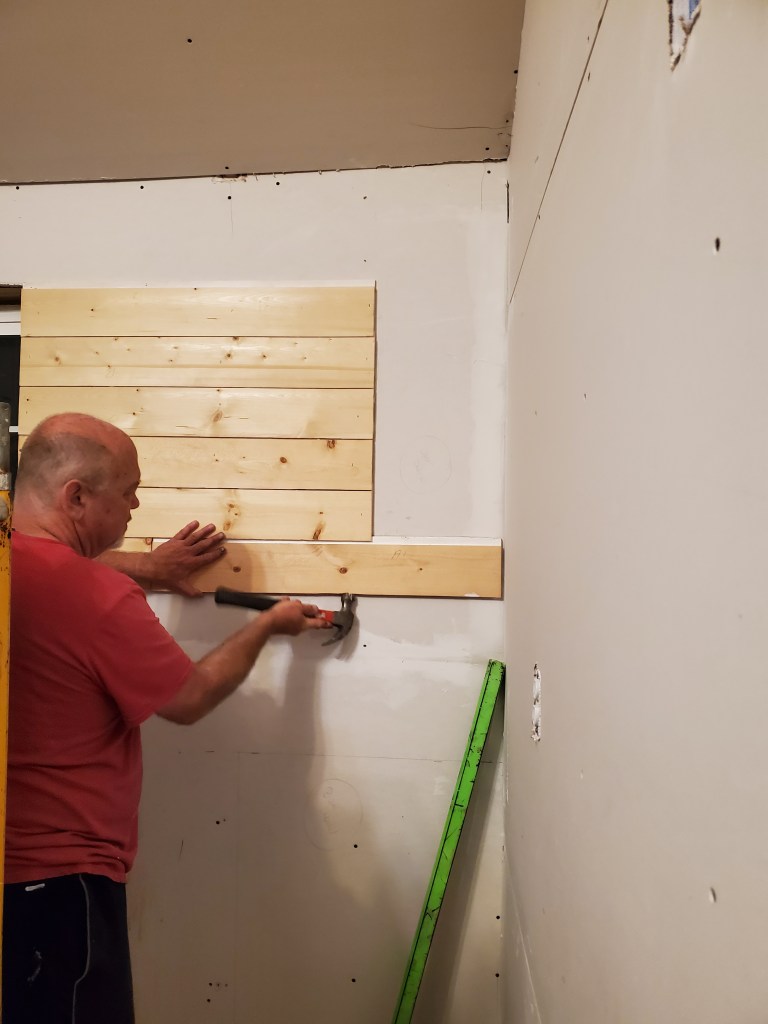After the ordination, we hung the shiplap in the kitchen. These boards were given to us from friends who took them down from their house. They were very rough wood, but Katie’s dad put them through a plainer to smooth them out. They look great, and we probably only have to buy 3 or 4 boards to finish the kitchen.