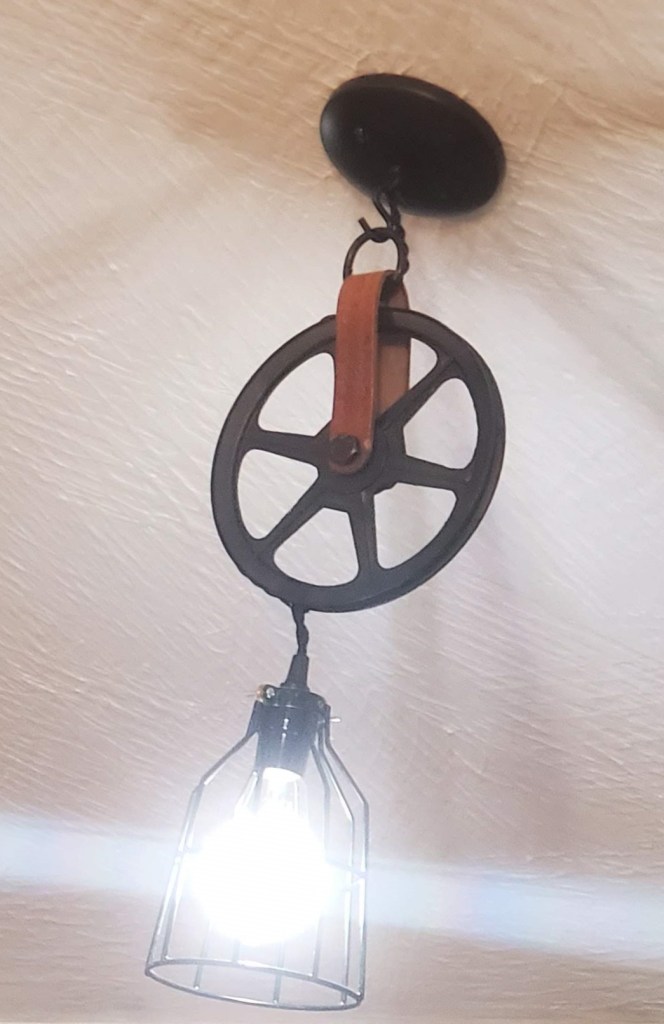 John used his creativity to create these wonderful pendant lights. We are going to have 2 of them in the living room, 3 in the kitchen, 1 in each bathroom and 1 over the mudroom sink. We could have only purchased 2 lights for what it cost us to build these 8! We pride ourselves in our thrifty creativity!