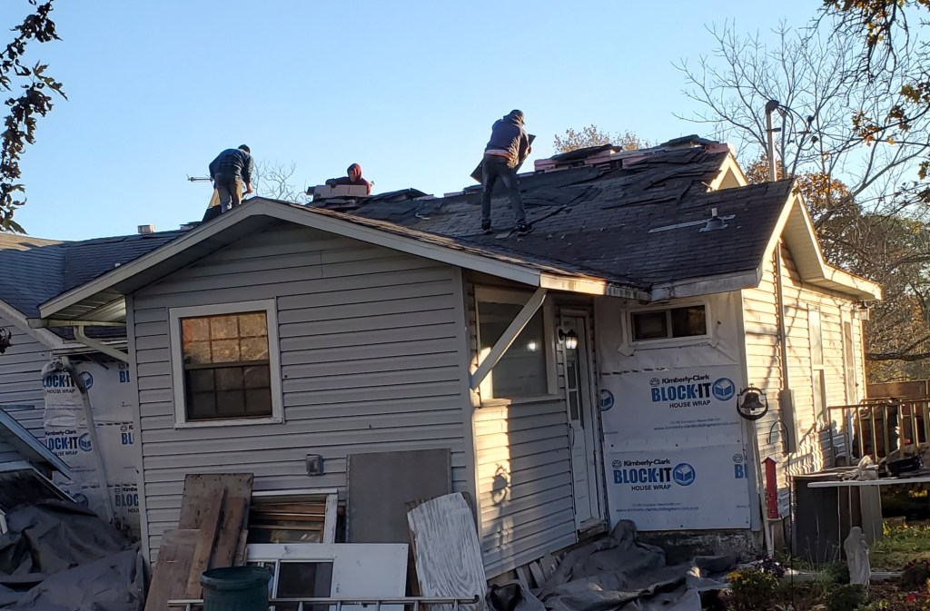 November 30, 2021 – The tuckpointing around the chimney did stop some of the water coming into the house, but not all of it. We had several more leaks which threatened to damage our newly-hung drywall. Our roofer, who we had on speed-dial, strongly recommended we install a new roof, rather than continue to patch it inch-by-inch. And so we did. It took the team just one day and the transformation was amazing. We’ve never really noticed roofs before, but ours looks so good! It does, however, make it more obvious that we will have to replace the siding, but that’s an expense for another time (probably next year).