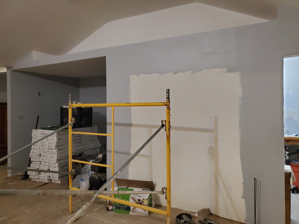 After several returned gallons of paint, we decided on the exact shades of grey, sage and terracotta paints. We painted the shiplap in the kitchen first, then the grey in the living room. It is hard to tell, but we painted the dining room nook a shade darker than the rest of the grey.
