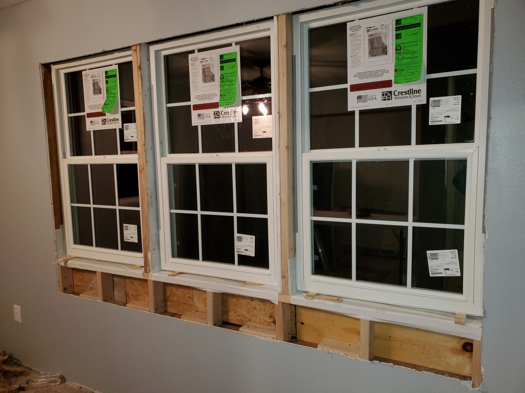 December 31, 2021 – We made so many HUGE advancements in the house this month. We replaced the front windows in the master bedroom. This room was the living room when we bought the house and it had a huge picture window. We took out the window (it was broken, anyway), and built up the wall to give us privacy. The new windows are clean and bright and make such a difference in our bedroom.