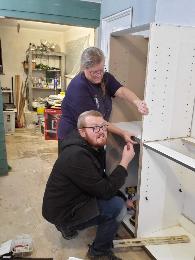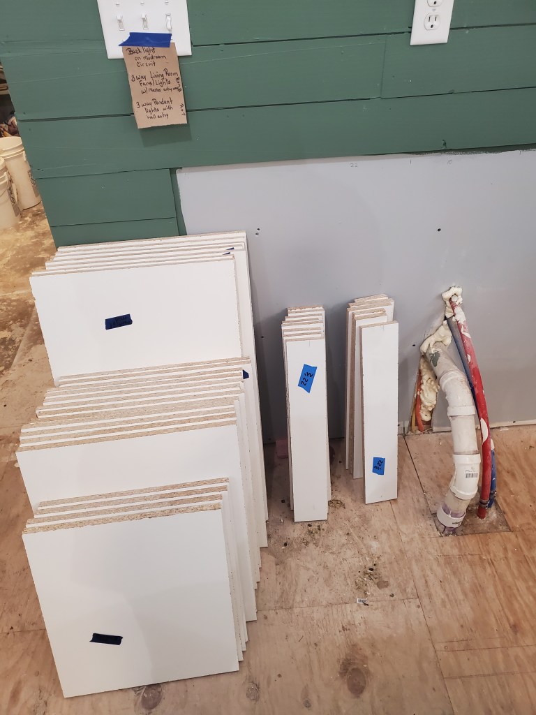 The bulk of this month was building cabinets. We built 26 cabinets for the bathrooms, mudroom, and kitchen (including our 9-cabinet 7-foot tall pantry!). We only are going to have 1 upper cabinet in the kitchen to keep the open feeling. Most of the lower cabinets in the kitchen will be drawers.