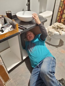 We installed the cabinets and countertop for the master bathroom vanity. We purchased a small vessel sink and love the way it looks. One section of the vanity will be 4 drawers and the other will just be cabinets. Installing the first drawer was an exercise full of frustration! After 2 hours, the first draw was finally installed! Katie is re-thinking all the drawers for the kitchen. There has to be a better way – she’s off to watch more how-to videos!
