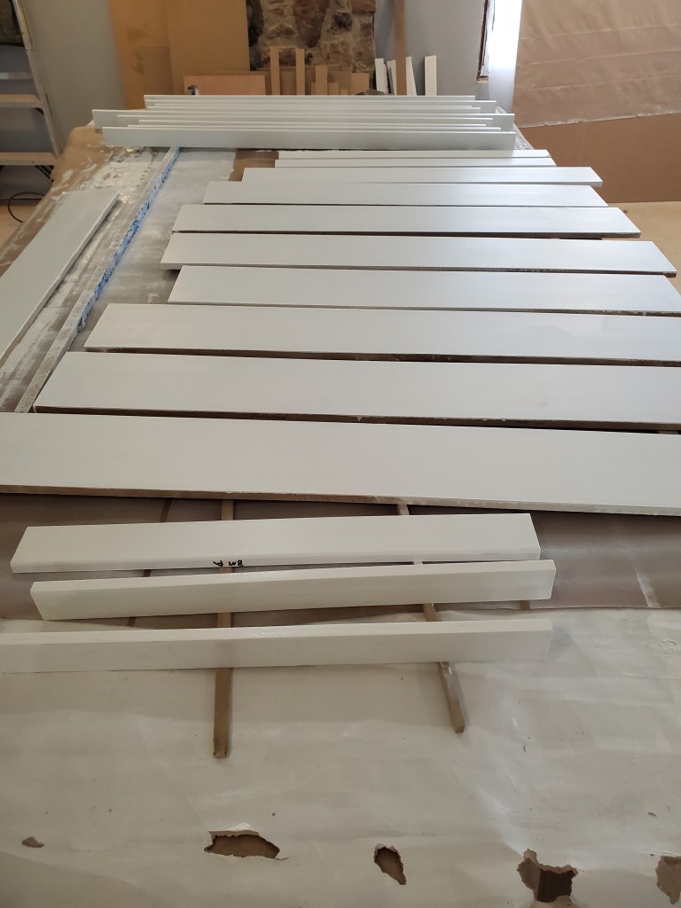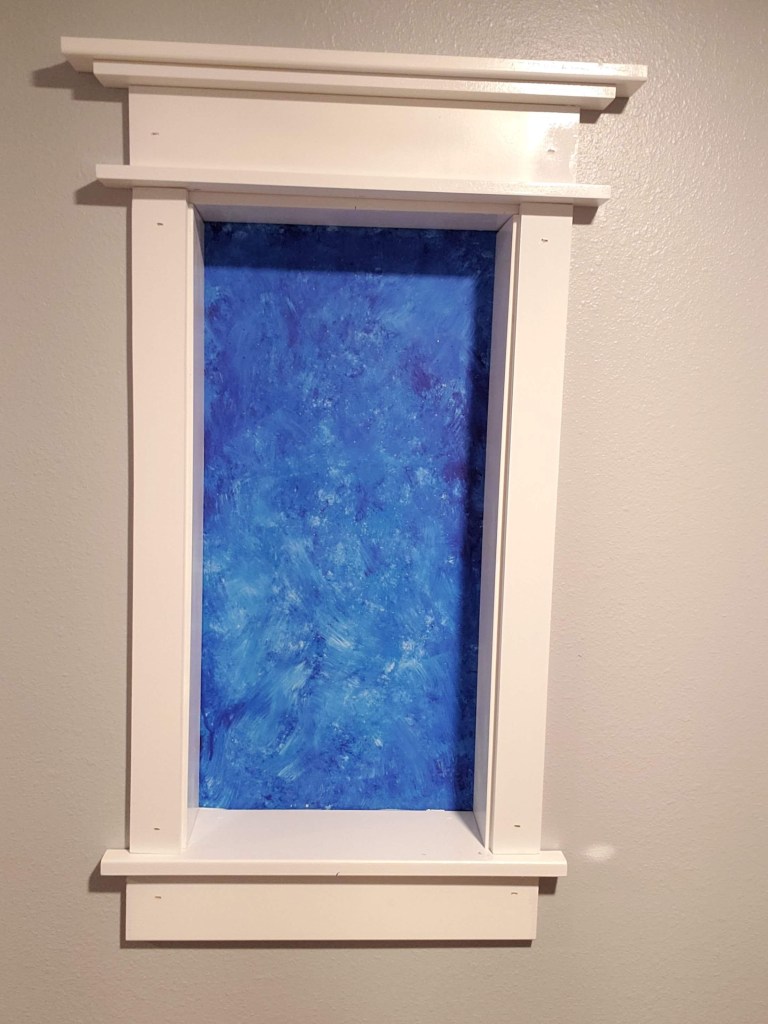 Last month, we installed molding around the small master bedroom window to see if we liked it. After living with it for a few weeks, we decided to frame all the windows and doors the same way. But buying all that molding was way over our budget. So, we purchased raw material and cut the molding to size. Each piece had to be primed, sanded, painted, sanded, and painted again. It took FOREVER and it’s still not finished. We were able to get the molding up around a few of the windows and the statue nook by our front door.