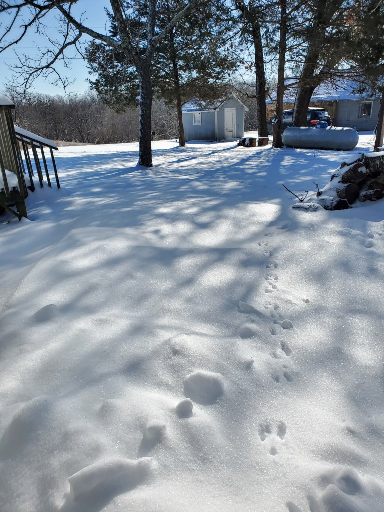 February 26, 2022 – We got our first real snow earlier this month. The pasture looks so nice with a fresh covering of snow. Since we are still living the in the apartment over the garage, we have a great view of the snow-covered pasture (we are trying to stay positive about still being in the apartment).