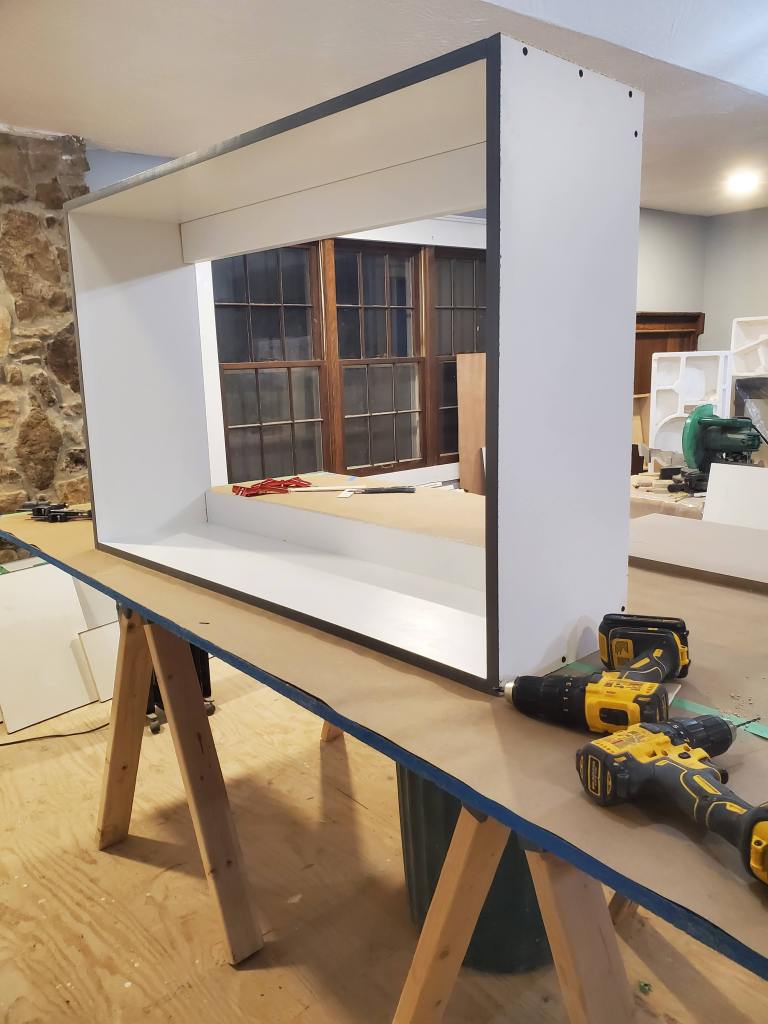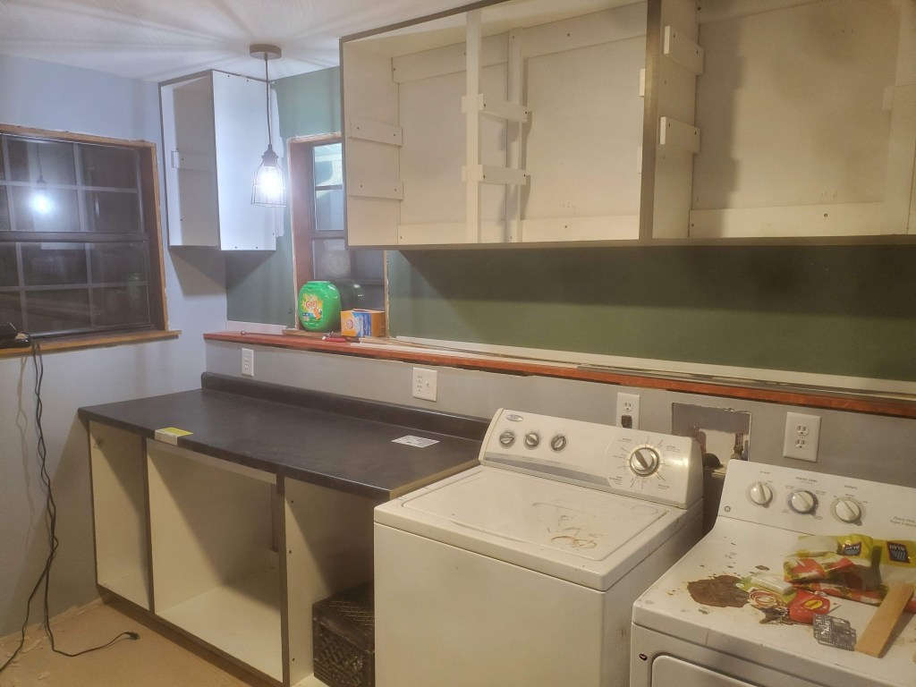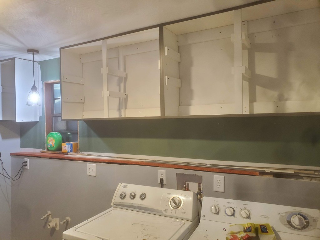 Once the concrete floor had cured, we were able to install the cabinets in the mudroom. We wanted to start here to work out any bugs. We installed the countertop, but will have to come back later to cut out the space where the sink will go.