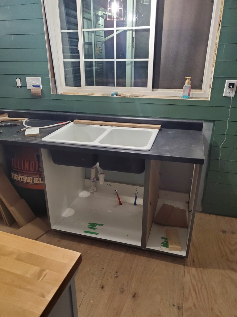 Inside, we got all the kitchen cabinets, countertops, and the sinks installed in the kitchen and mudroom. It is really starting to feel like a house. Joshua came home for the weekend and refinished the master bedroom floor. This is the only floor in the entire house that we are keeping and we’re thrilled that it turned out so nice!