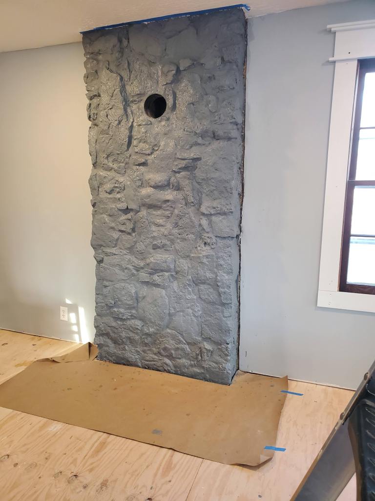 We had so many people tell us that it was a shame that we painted the mahogany dressers for our bathroom vanity and kitchen island. We don’t go out of our way to offend people, but the originals just did not fit in our farmhouse. The same can be said about the ugly stone fireplace wall. Katie really did not like it, and the stones were difficult to clean. So, we painted it! And we love the way it looks. We don’t have a wood stove yet (the old one rotted), but the chimney wall is ready when it gets here.