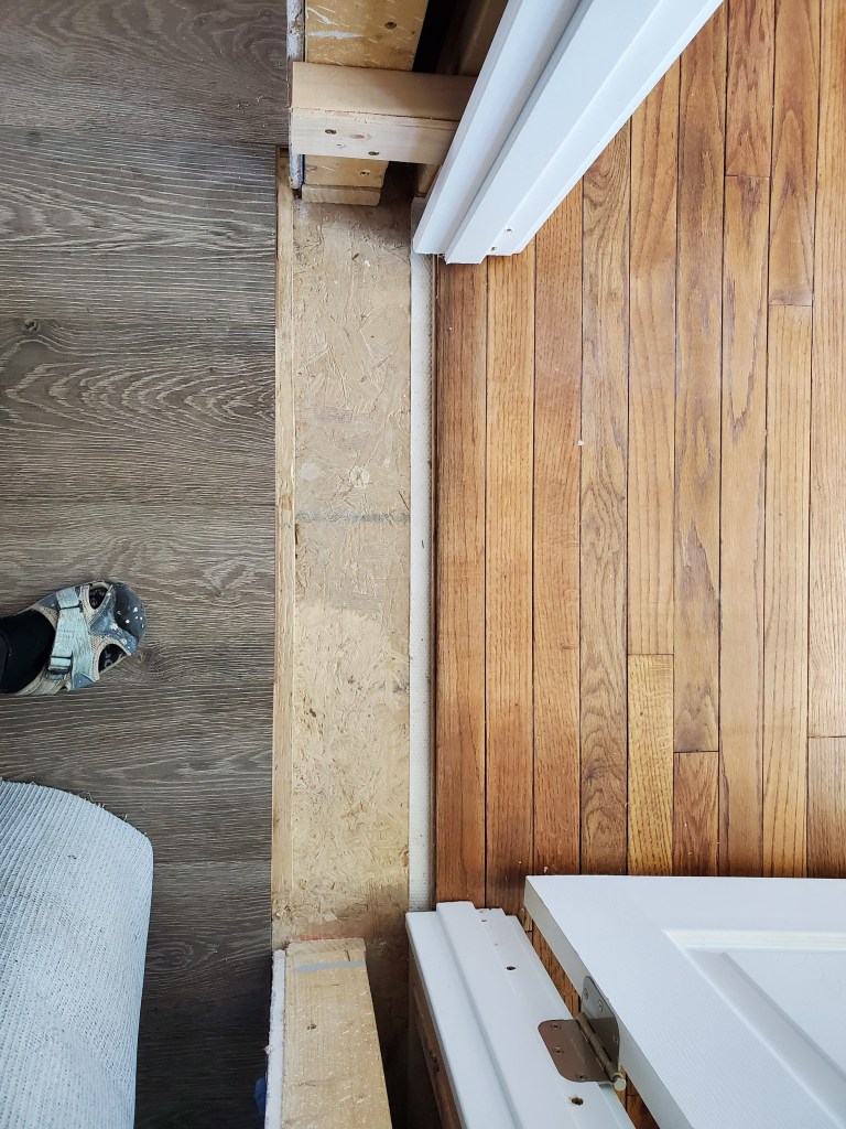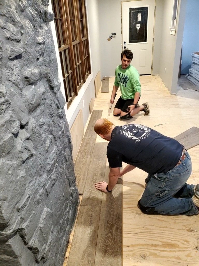 With all the major work done, we turned our attention to the floors. Nicholas came in for a week to help us with the house and he called is friends over to help lay the floor. Once we got it figured out, it went quite smoothly, and it looks beautiful! We still have to finish the transition pieces for a few of the doorways.
