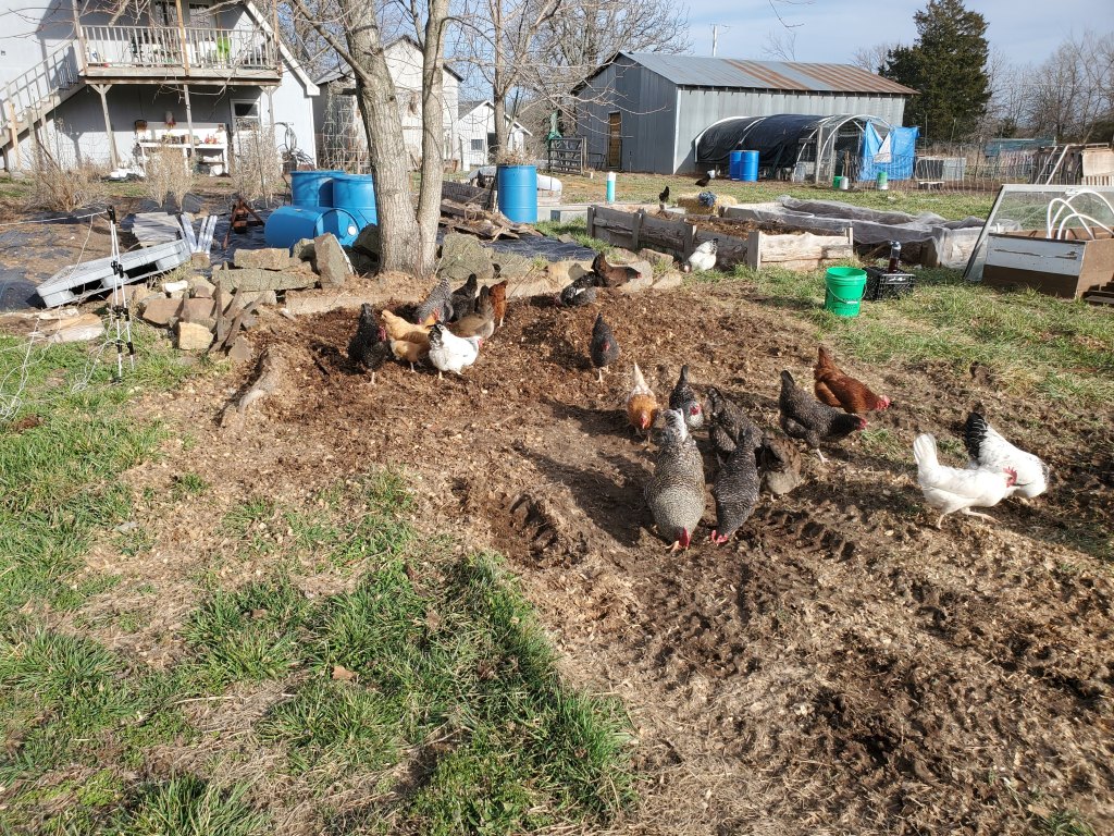 Because we ended last year’s growing season abruptly, we had to start this garden year by cleaning out the garden beds, The egg chickens helped us spread out the compost as they were looking for bugs. We added a few more raised beds and amended the ones we already had. We started seedlings in February, and we planted some outside this month. We even remembered to plan potatoes on March 17th! Judging by the rigor of the seedlings, we have high hopes for this year’s harvest. At the end of the month, our new trees came in. We ordered more apple trees, and we also purchased several different trees from the Missouri Conservation department. Many of these we are going to plant in buckets to let them get bigger before we plant them in the ground. We may also sell some of them next year with our seedling sale.