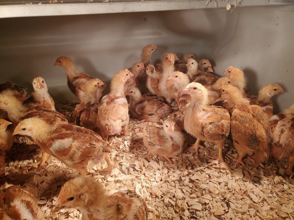 We also received our first order of meat chickens. Since we sold out last year, we decided to start with 75 big red broiler meat chickens. These will grow a little slower than the white Cornish Crosses that we usually get, but they are supposed to be able to get more of their food from foraging. They will spend 3 or 4 weeks in the garage until the night-time temperature is warm enough, then we will move them to the green pasture.
