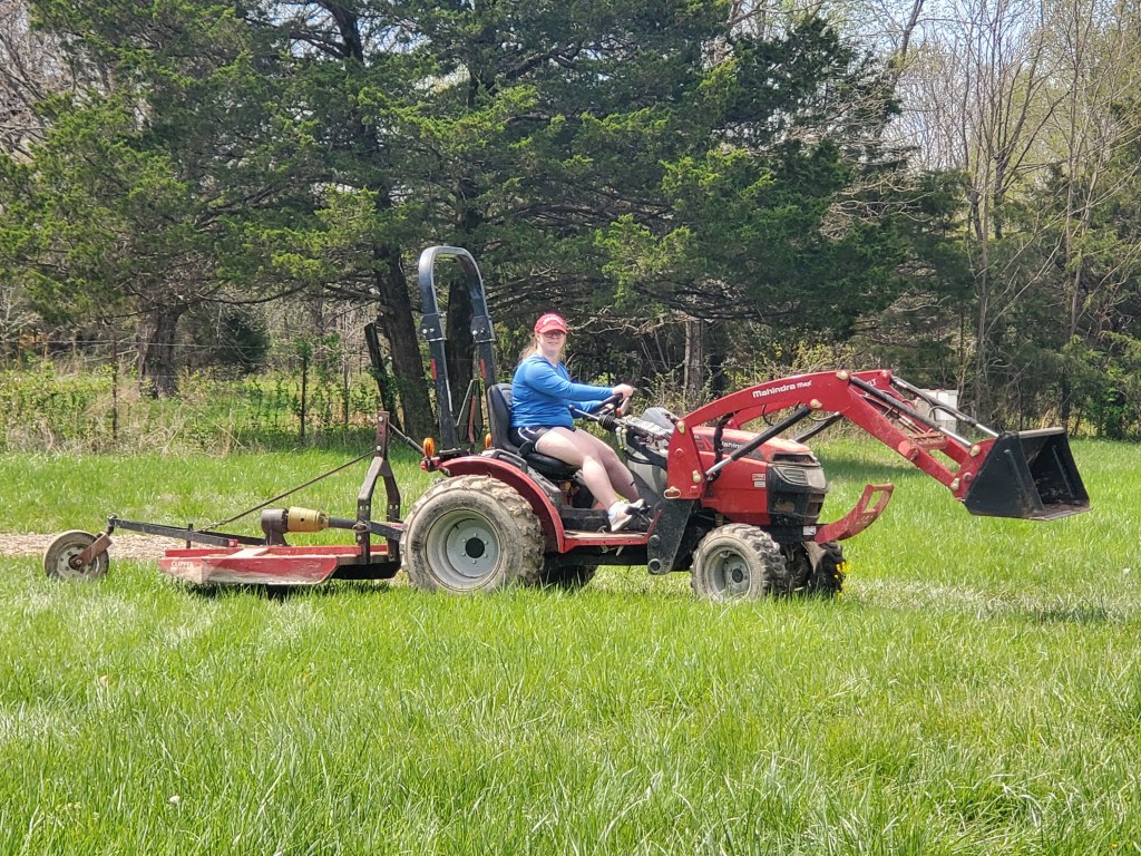 Our oldest son and his wife came for the weekend after Easter. We got the towels and shower curtains hung in the guest bathroom and set up the guest bedroom nicely for them. We were overjoyed to have them for the weekend as we celebrated their first wedding anniversary. While they were here, they helped us with some yard work and Amy even drove the tractor.