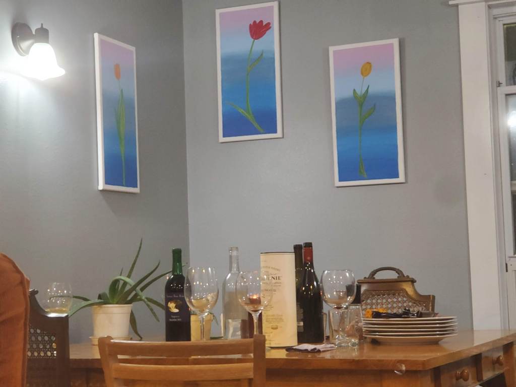 About 1 week before the main event, the celebration began with a visit from Father Daniel, Nicholas’s pastor and Father Paul. We had dinner and there was lots of laughter. Father Daniel gave us a housewarming gift of 3 flower paintings he painted himself. They hang beautifully in our dinning nook.