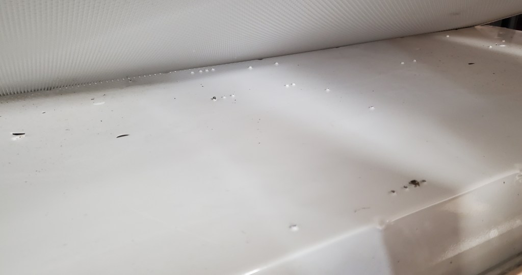Several years ago, I found these office lights online for $3 each, so I bought 15 of them. I bypassed the ballast and changed the light bulbs to LED bulbs. Plants grow MUCH better under the LED lights. I then wired each light to a plug (they were set-up for hard wiring). I’m not an electrician so I’m not going to give you detailed directions on how to wire the lights, but I will tell you that there are many resources online – that’s how I learned!